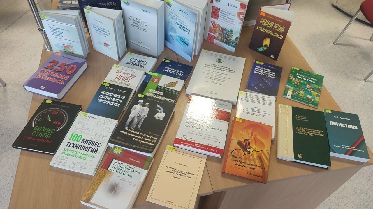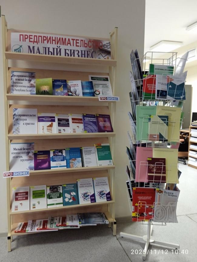 Да гэтай даты ў чытальных залах бібліятэкі аформлены кніжныя выстаўкі “Прадпрымальніцтва і малы бізнес”, “Актуальныя праблемы прадпрымальніцтва” (навучальны корпус № 3, вул. Пушкіна, 4, аўд. 3332 і навучальны корпус № 1, вул. Кірава, 24). Тут прадстаўлена літаратура, дзе разглядаюцца самыя розныя аспекты бізнэсу і прадпрымальніцтва, праблемы станаўлення малога і сярэдняга бізнэсу, стан рынка працы, падручнікі па асновах бізнэсу.