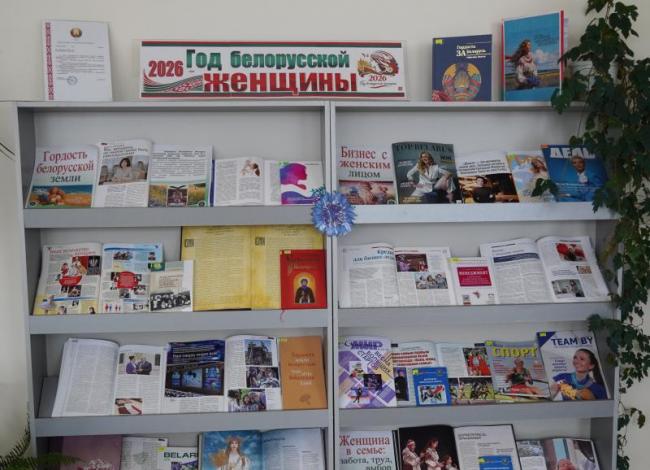 У чытальнай зале бібліятэкі (вул. Пушкіна, 4, аўд. 3332) аформлена кніжна-ілюстрацыйная выстаўка “2026 – Год беларускай жанчыны”.