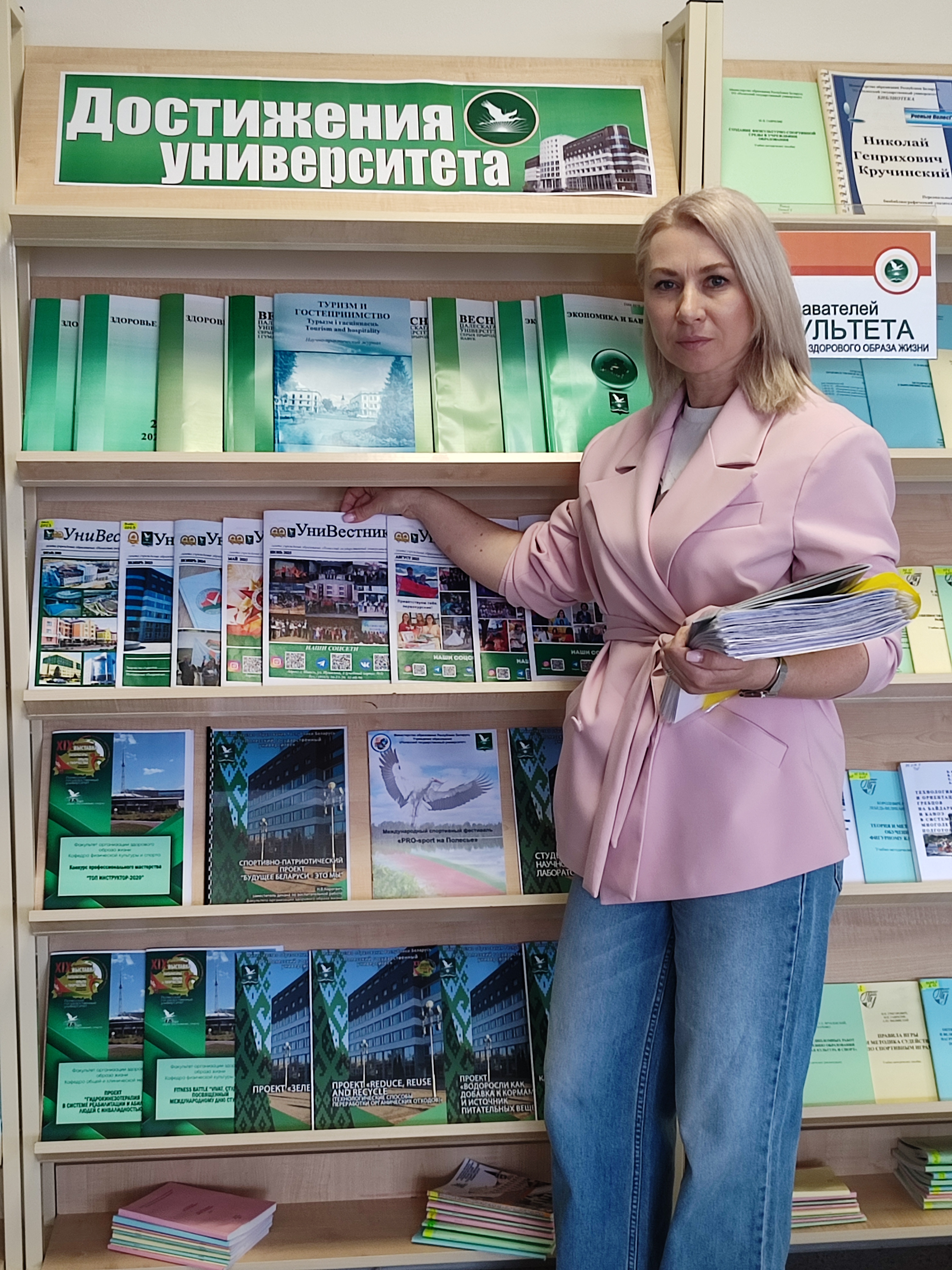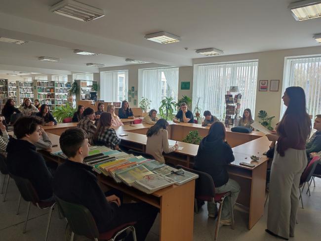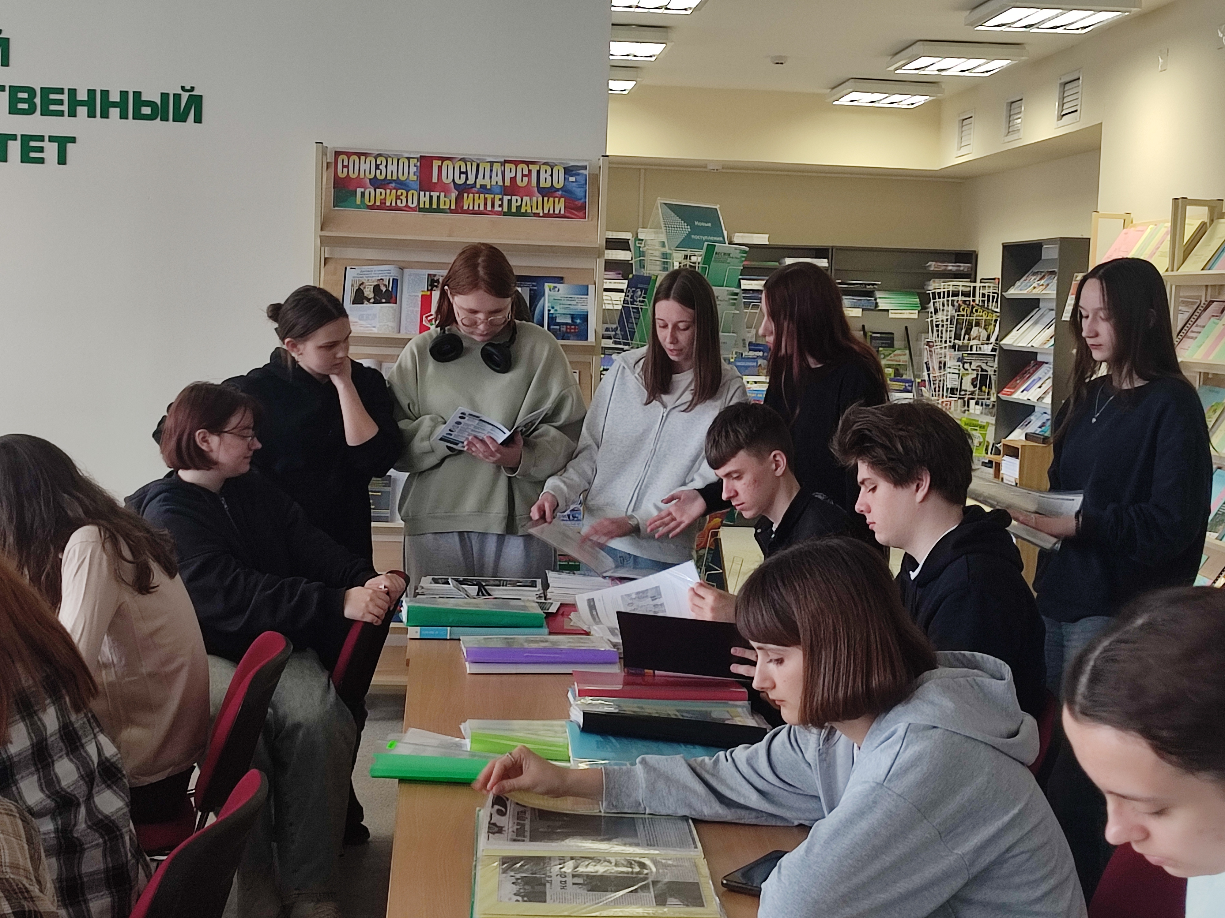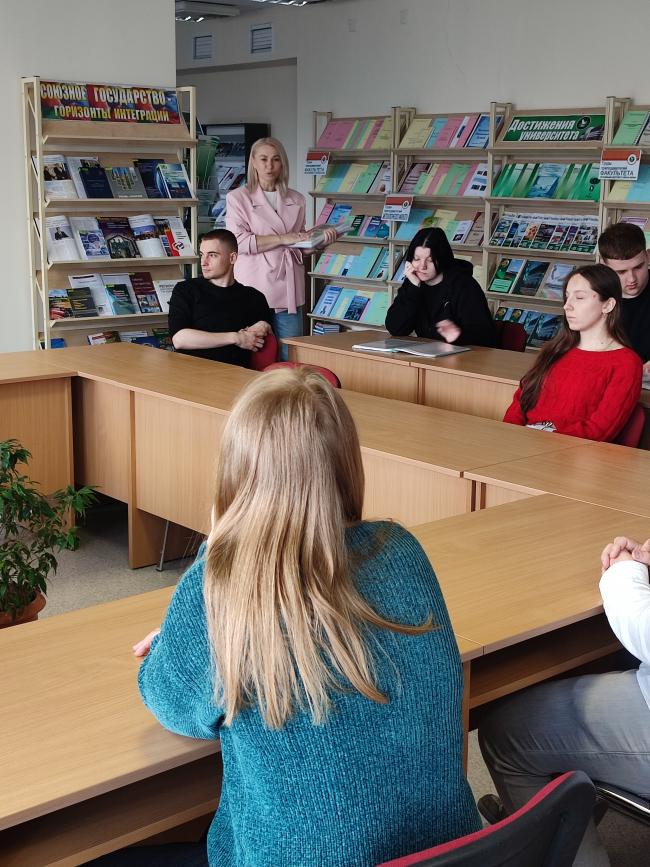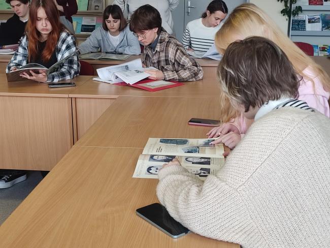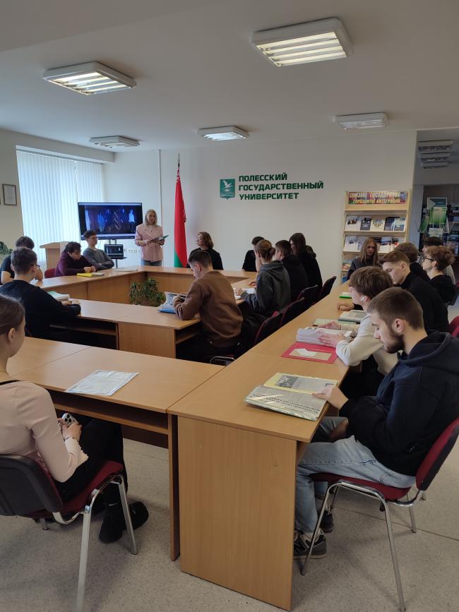У чытальнай зале бібліятэкі (вул. Пушкіна, 4, аўд. 3332) прайшлі інфармацыйныя гадзіны з групамі 25ІТ-4, 25БТ-2, 22БТ-2, прысвечаныя 20-гадоваму юбілею Палескага дзяржаўнага ўніверсітэта. Вядучы бібліятэкар А.К. Кучынская пазнаёміла студэнтаў з кніжнай выставай “Дасягненні ўніверсітэта”, друкаванымі матэрыяламі “ПалесДУ ў друку”, сабранымі з 2006 года, газетай “Унівеснік”. Студэнты паглядзелі відэаролік аб універсітэце. Усё гэта стварыла атмасферу адзінства і агульнага дачынення да гісторыі ВНУ.