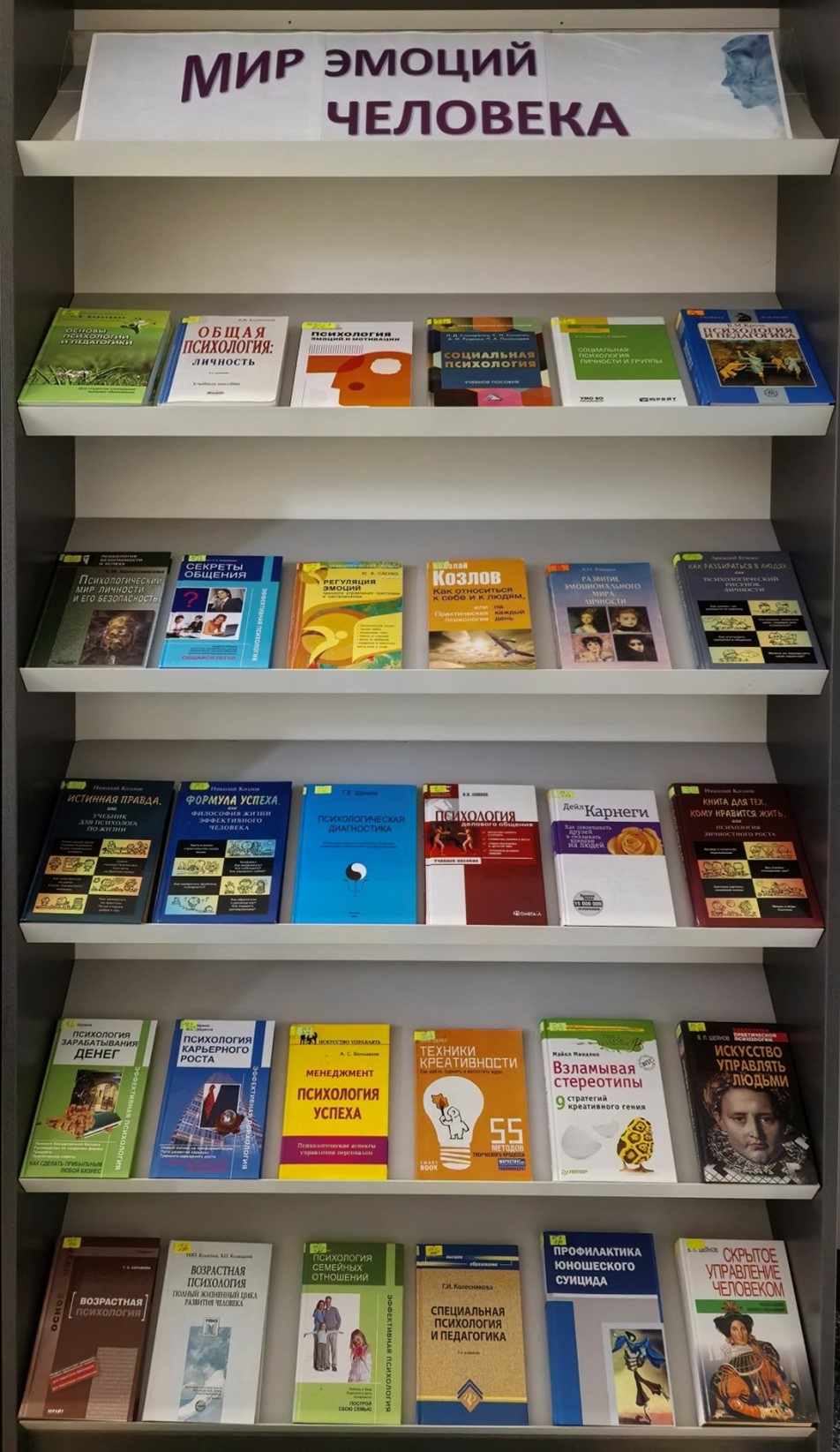 У бібліятэцы навучальнага корпуса №1 арганізавана кніжная выстаўка “Свет эмоцый чалавека” На выстаўцы прадстаўлена літаратура, у якой раскрываюцца праблемы асобаснага развіцця і паводзін, выкладаюцца псіхалагічныя асновы зносін, узаемадзеяння паміж людзьмі ў розных сферах жыцця з улікам іх тэмпераменту і характару.