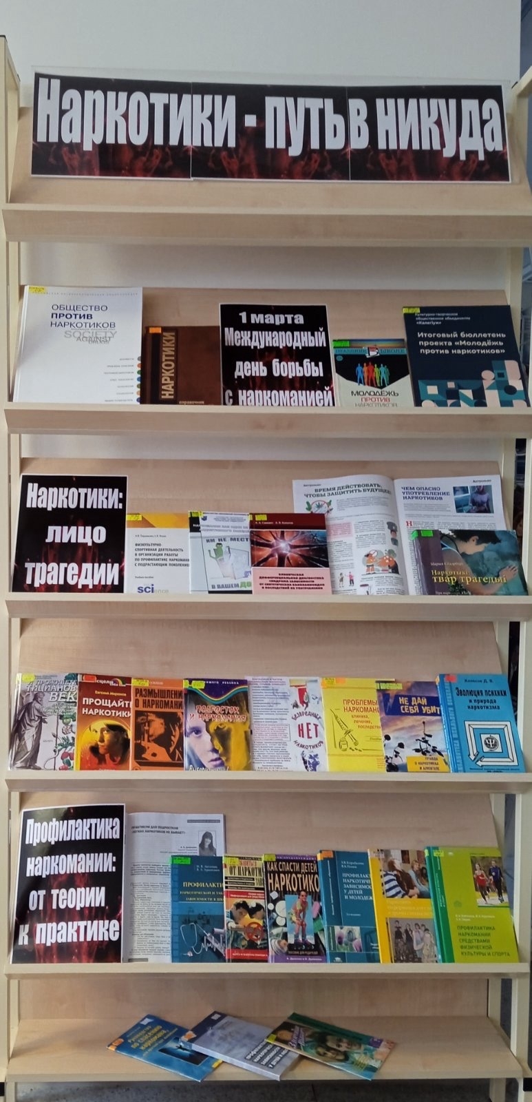 У сучасным жыцці тэма наркаманіі вельмі актуальная, бо ўсё больш і больш людзей уцягваецца ў гэтую бяду, і як гэта ні трагічна, у шэрагах наркаманаў вельмі шмат моладзі. За секундныя псеўдазадавальненні - РАСПЛАТА ЖЫЦЦЁ! Ужыванне наркатычных і таксічных прэпаратаў вядзе да маральнай дэградацыі асобы, фізічна разбурае арганізм і прыводзіць у выніку да смерці. Менавіта таму і быў заснаваны Міжнародны дзень барацьбы з наркаманіяй і незаконным абаротам наркотыкаў, які нагадвае ўсяму чалавецтву пра гэтую страшную хваробу. Да гэтай даты ў чытальнай зале (навучальны корпус № 3, вул. Пушкіна, 4, аўд. 3332) аформлена кніжная выстаўка-папярэджанне “Наркотыкі – шлях у нікуды”. Прадстаўленыя на выстаўцы кнігі, часопісныя артыкулы дапамогуць знайсці адказы на многія пытанні: хто і як зацягвае моладзь у наркатычны вір, як супрацьстаяць тым, хто прапануе паспрабаваць псіхаактыўныя рэчывы, ці ёсць будучыня ў наркамана.