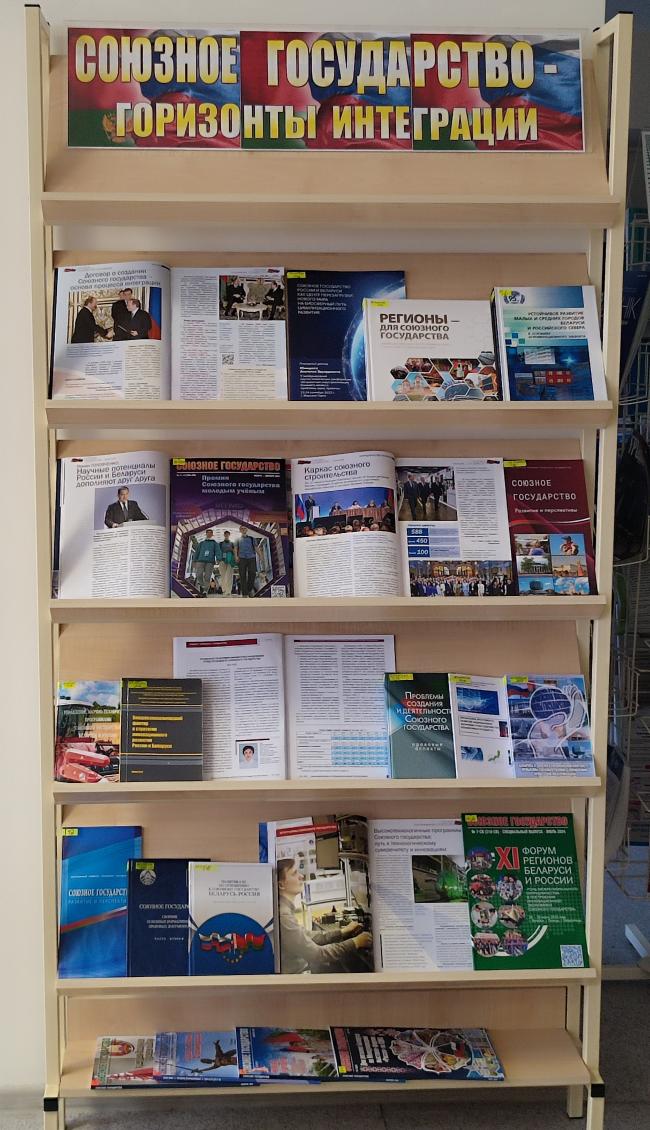 У чытальнай зале бібліятэкі (корпус 3, вул.Пушкіна, 4, аўд. 3332) адкрылася выстаўка “Саюзная дзяржава – гарызонты інтэграцыі”. Матэрыялы, прадстаўленыя на выстаўцы, асвятляюць розныя аспекты міждзяржаўных адносін Расіі і Беларусі: гісторыю саюзнай дзяржавы, этапы эканамічнага супрацоўніцтва, сумесныя культурныя праекты.